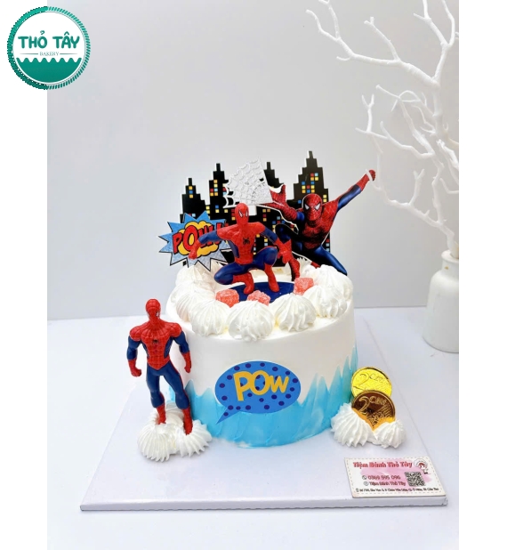 Mẫu bánh kem người nhện cho bé trai thường có màu đỏ và xanh đặc trưng, được trang trí hình mạng nhện cùng nhân vật Spider Man nổi bật trên mặt bánh. Thiết kế này mang lại cảm giác mạnh mẽ và đầy năng động.