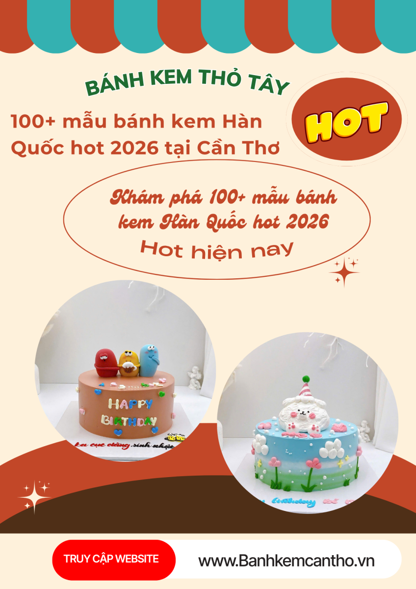 Tại Cần Thơ, nhu cầu tìm kiếm các mẫu bánh kem Hàn Quốc đẹp ngày càng tăng cao. Nắm bắt xu hướng này, Bánh Kem Thỏ Tây đã không ngừng cập nhật và sáng tạo, mang đến hơn 100+ mẫu bánh kem Hàn Quốc đa dạng, phù hợp với nhiều đối tượng và mục đích sử dụng.