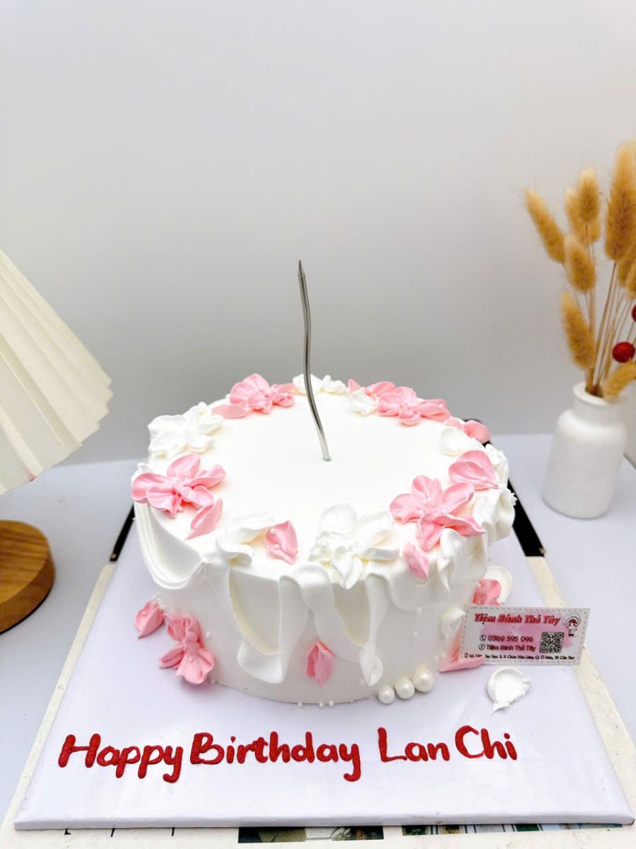 Các mẫu bánh trang trí hoa kem, hoa giấy hoặc hoa giả cao cấp mang lại cảm giác sang trọng, phù hợp làm quà tặng cho mẹ, sếp nữ hoặc người lớn tuổi.