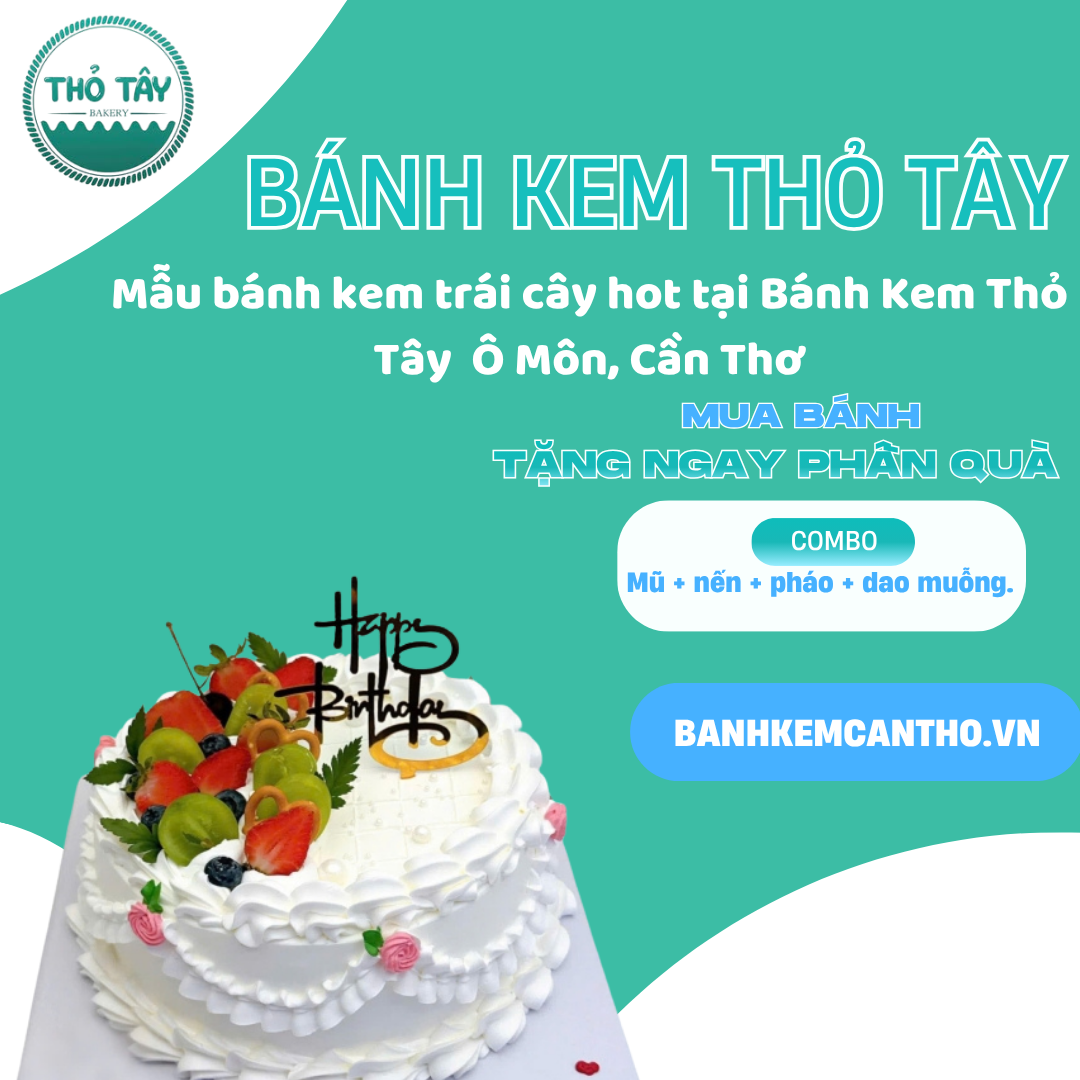 Mẫu bánh kem trái cây tại Bánh Kem Thỏ Tây – Ô Môn, Cần Thơ kết hợp vị ngon, màu sắc tươi sáng và thiết kế chuyên nghiệp, là lựa chọn lý tưởng cho các dịp sinh nhật, lễ tặng mẹ hoặc các buổi tiệc gia đình.Với nguyên liệu tươi ngon, đội ngũ thợ bánh chuyên nghiệp, dịch vụ giao nhanh và khả năng cá nhân hóa bánh, Thỏ Tây đảm bảo mang đến trải nghiệm tuyệt vời cho khách hàng.Hãy chọn Bánh Kem Thỏ Tây để mỗi chiếc bánh kem trái cây không chỉ là món quà, mà còn là thông điệp yêu thương gửi gắm đến người nhận.