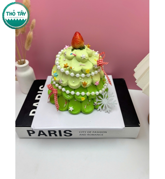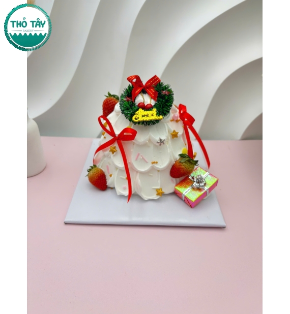 Bánh cây thông luôn nằm trong danh sách mẫu bán chạy nhất mỗi dịp Giáng Sinh tại Thỏ Tây. Với tone xanh – trắng – đỏ đặc trưng mùa lễ, bánh được phủ kem mịn, tạo hình cây thông nổi 3D và trang trí bằng các chi tiết nhỏ như sao, hoa tuyết, quà tặng nhỏ bằng kem.